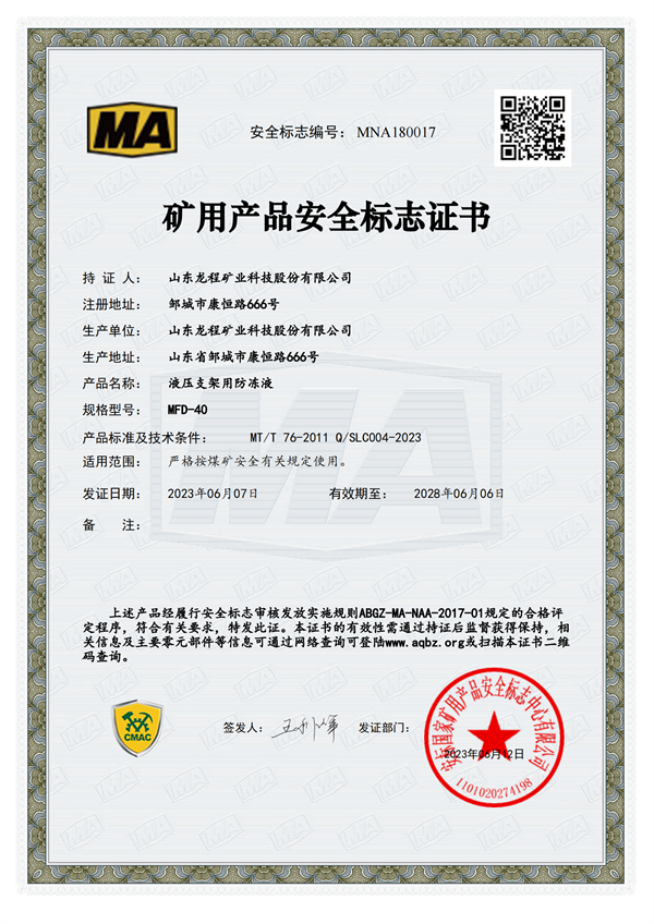 MFD-40 矿用产品安全标志证书